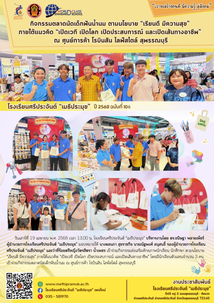 กิจกรรมตลาดนัดเด็กฟันน้ำนม ตามนโยบาย “เรียนดี มีความสุข”ภายใต้แนวคิด “เปิดเวที เปิดโลก เปิดประสบการณ์ และเปิดเส้นทางอาชีพ” ณ ศูนย์การค้า โรบินสัน ไลฟ์สไตล์ สุพรรณบุรี