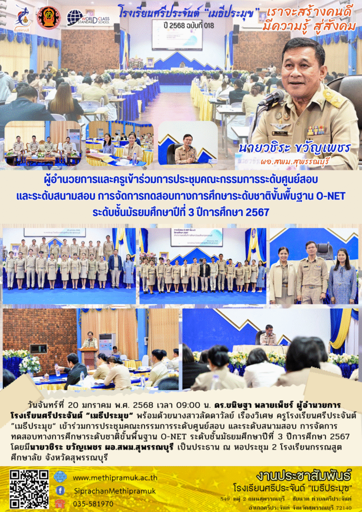 ผู้อำนวยการและครูเข้าร่วมการประชุมคณะกรรมการระดับศูนศูนย์สอบและระดับสนามสอบ การจัดการทดสอบทางการศึกษาระดับชาติขั้นพื้นฐาน O-NETระดับชั้นม้รยมศึกษาปีที่ 3 ปีการศึกษา 2567