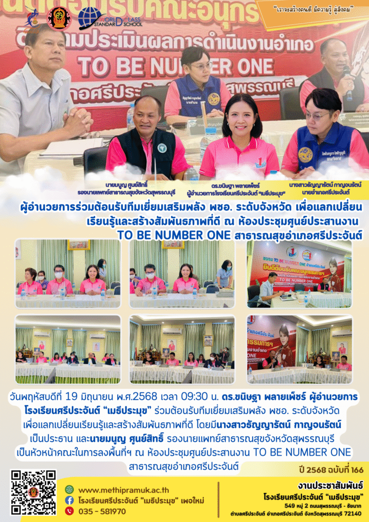 ผู้อำนวยการร่วมต้อนรับทีมเยี่ยมเสริมพลัง พชอ. ระดับจังหวัด เพื่อแลกเปลี่ยนเรียนรู้และสร้างสัมพันธภาพที่ดี ณ ห้องประชุมศูนย์ประสานงาน TO BE NUMBER ONE สาธารณสุขอำเภอศรีประจันต์