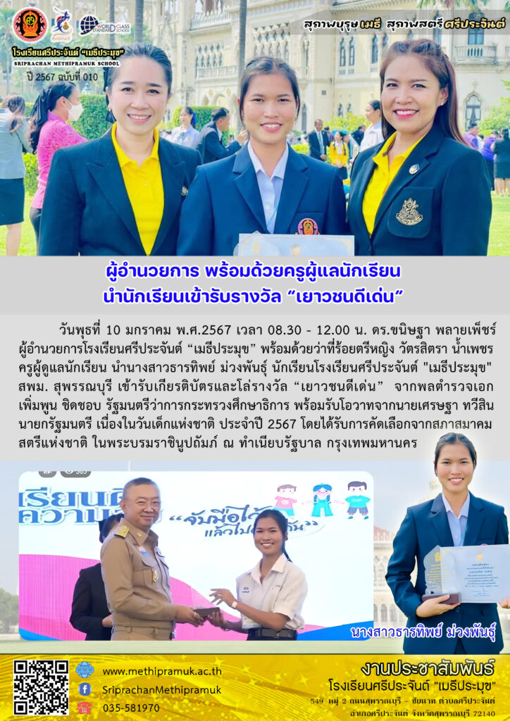 ผู้อำนวยการ พร้อมด้วยครูผู้แลนักเรียนนำนักเรียนเข้ารับรางวัล “เยาวชนดีเด่น”