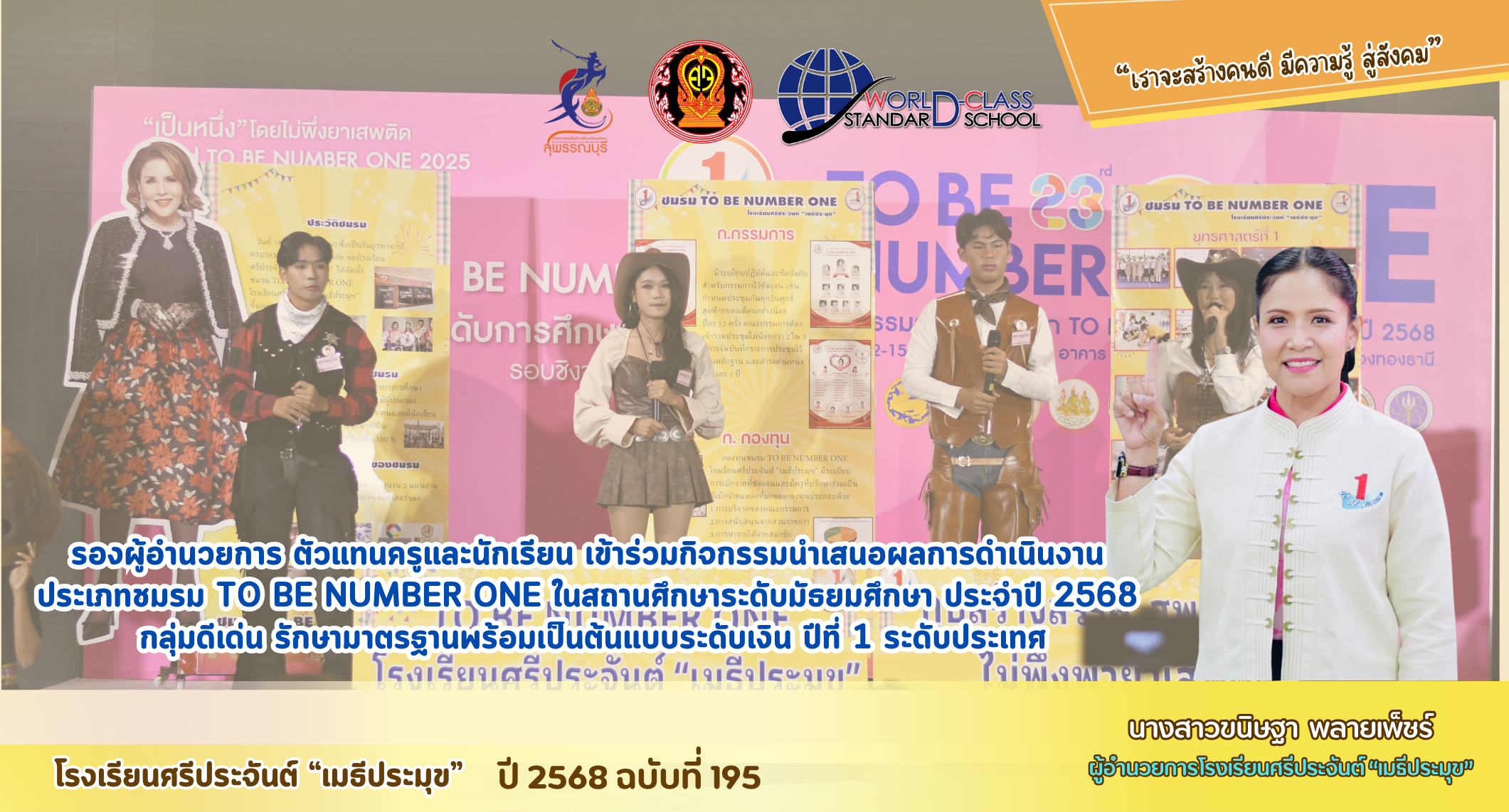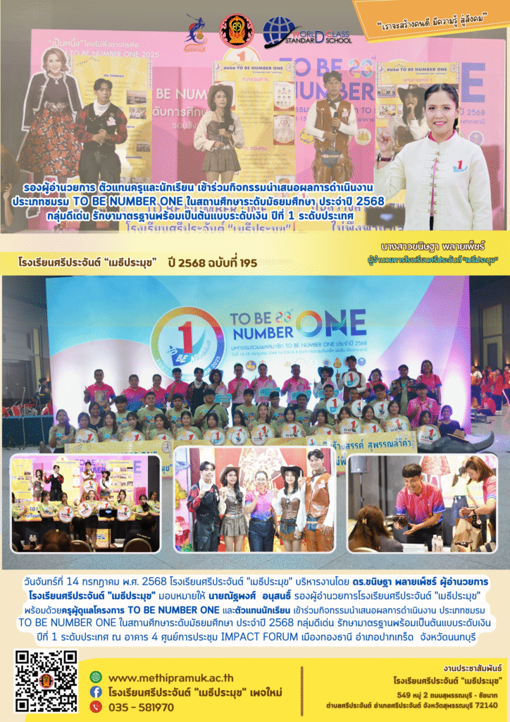รองผู้อำนวยการ ตัวแทนครูและนักเรียน เข้าร่วมกิจกรรมนำเสนอผลการดำเนินงานประเภทชมรม TO BE NUMBER ONE ในสถานศึกษาระดับมัธยมศึกษา ประจ่าปี 2568 กลุ่มดีเด่น รักษามาตรฐานพร้อมเป็นต้นแบบระดับเงิน ปีที่ 1 ระดับประเทศ