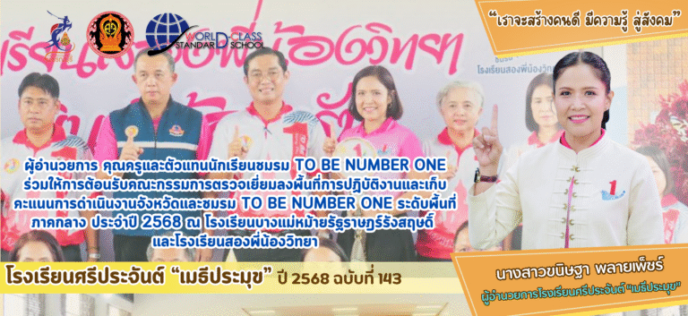 ผู้อำนวยการ คุณครูและตัวแทนนักเรียนชมรม TO BE NUMBER ONEร่วมให้การต้อนรับคณะกรรมการตรวจเยี่ยมลงพื้นที่การปฏิบัติงานและเก็บคะแนนการดำเนินงานจังหวัดและชมรม TO BE NUMBER ONE ระดับพื้นที่ภาคกลาง ประจ่าปี 2568 ณ โรงเรียนบางแม่หม้ายรัฐราษฎร์รังสฤษดิ์และโรงเรียนสองพี่น้องวิทยา EPHIN22 กรกฎาคม 202522 กรกฎาคม 2025Read more
