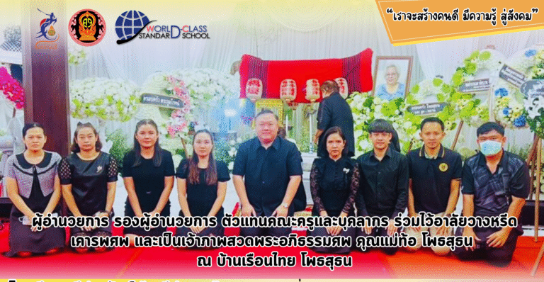 ผู้อำนวยการ รองผู้อ่านวยการ ตัวแทนคณะครูและบคลากร ร่วมไว้อาลัยวางหรีดเคารพศพ และเป็นเจ้าภาพสวดพระอภิธรรมศพ คุณแม่ท้อ โพธสุธนณ บ้านเรือนไทย โพธสุธน22 กรกฎาคม 202522 กรกฎาคม 2025Read more